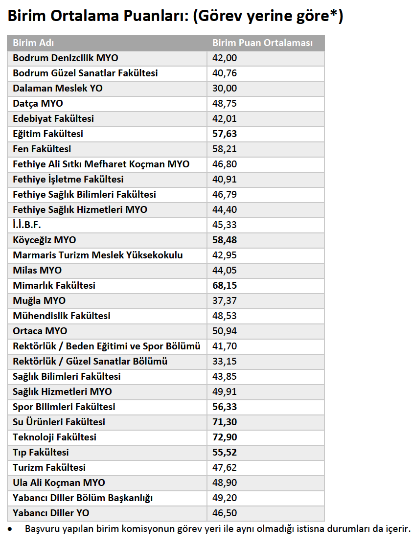 Görev Yerine Göre Birim Ortalama Puanları